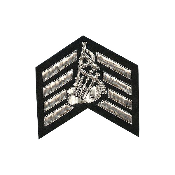 4 Strips Chevron with bagpipe silver wire embroidery for doublet arm and for any uniforms arms.