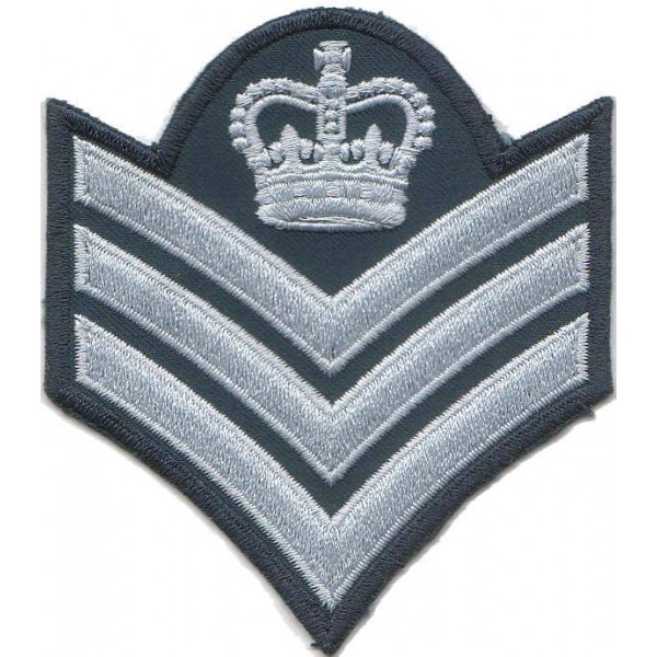 3 Strips Chevron with crown white thread hand embroidery gray blazer background for doublet arm and for any uniforms arms.