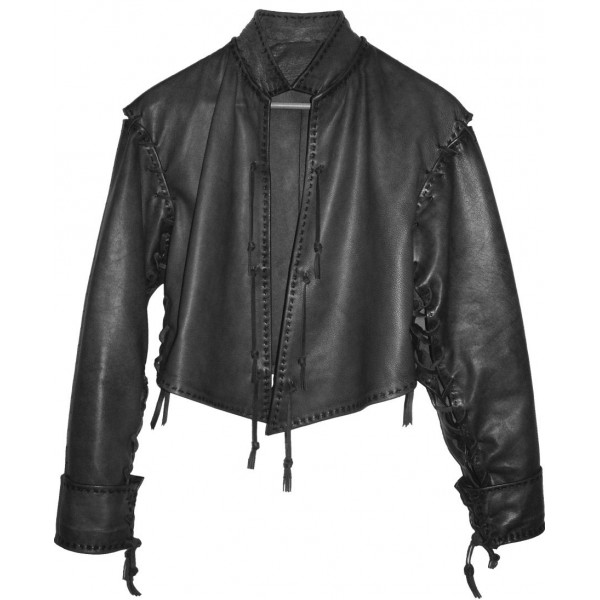 Jacobite black leather waist coats with removable sleeves, Each Waist Coat is hand-made at the time of order to ensure proper fit and can be customized to fit your Scottish style.