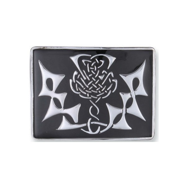 Celtic or Scottish Waist belt buckle black color thistle design on the front use for pipe band waist belts.
