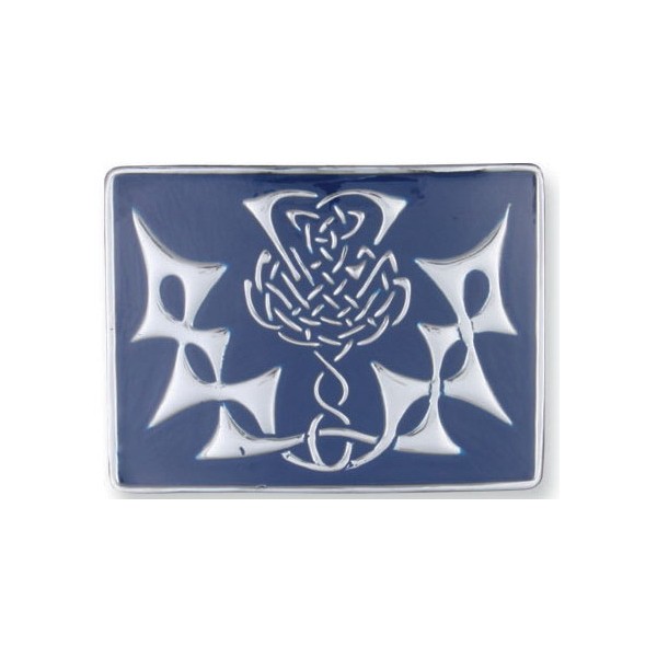 Celtic or Scottish Waist belt buckle blue color thistle design on the front use for pipe band waist belts.
