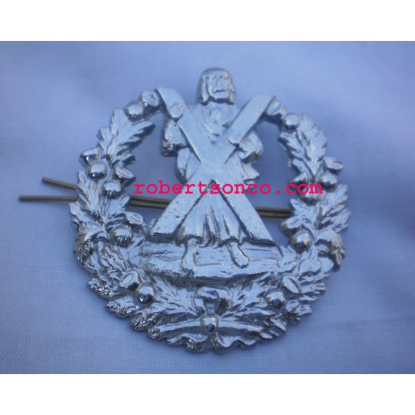 Cameron O/R No Scroll Pre 1881 Cap Badges made in all brass with black watch crest, available in nickle plated and gold colors...