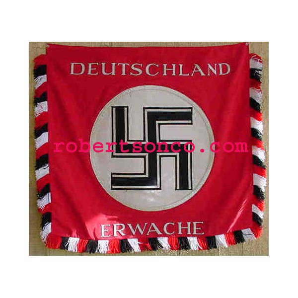 Today this Banner and it's accompanied Pole Top are one of the most sot after prizes for any great collection! Don't be fooled! There are a lot of very poorly constructed imitations for sale on the market today! BUT NOT OURS! We have taken grate steps to produce for our Honored Customers this highly exacting piece! Original wartime material is used for the construction, our letters are "fish scaled" embroidered as was the originals, the outside of the letters are chain stitched as were the originals, and many other special features to numerous to discuss, which makes our Banner worlds apart from the Competitors, & at a price everyone can afford.