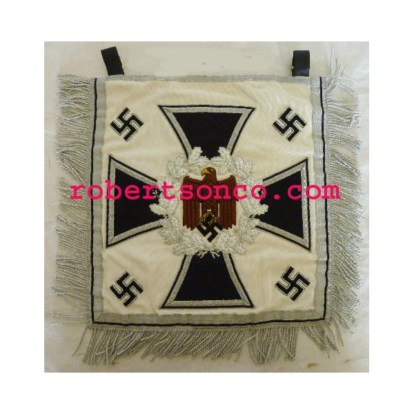 BUGLE BANNERS, Embroidered on Correct Original War Time Material, Extensive Embroidery throughout with both Bullion & Cotton embroidery at a fraction of the price you would pay for a big REGT STANDART. We have these in all Branch Colors of your choice with special leather straps for attaching.