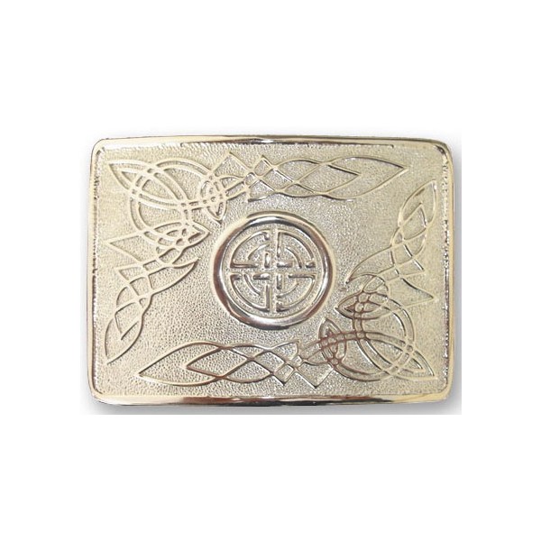 Celtic Waist belt buckle gold color celtic design on the front use for pipe band waist belts.