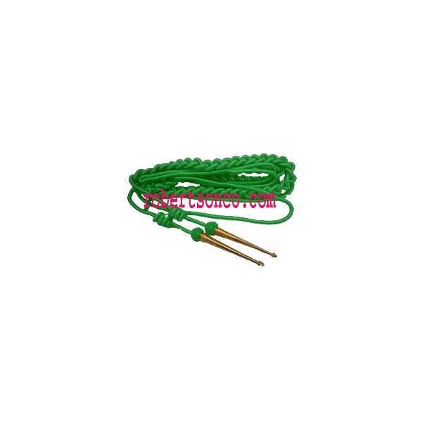 An aiguillette is an ornamental braided cord most often worn on uniforms, but may also be observed on other costumes such as academic dress, where it will denote an honor. Originally, the word aiguillette referred to the lacing used to fasten plate armour together. As such a knot or loop arrangement was used which sometimes hung down from the shoulder. Aiguillettes should not be confused with lanyards, which are cords also worn from the shoulder (or around the neck), but do not have the pointed aiguillette tips and are usually of fibre rather than gold or silver wire, and often not braided.