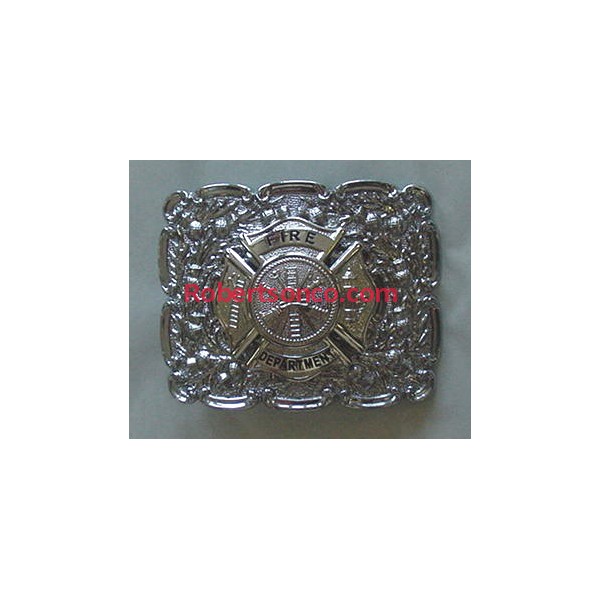 Firefighters Maltese Cross on thistle motif buckle in nickle plated. This buckle fits with belts.