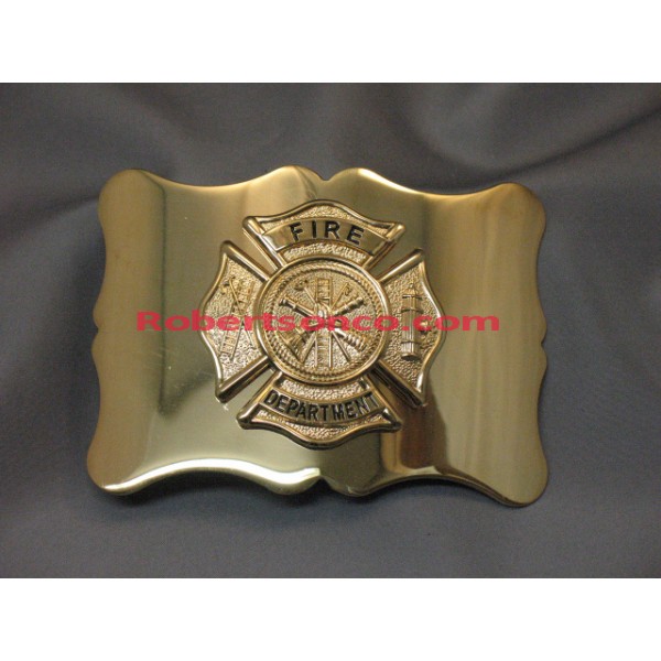 Fire Department Pipe Band Gold Buckle With Gold Badge.