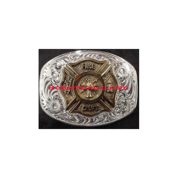 Fireman's Maltese Cross Belt Buckle With Gold Badge. This buckle fits with belts. Full heavy weight buckle, specail made on order.