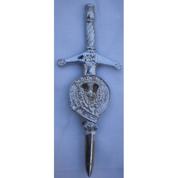 Piper and drummer kilt pin made in brass nickel plated with thistle badge on kilt pin. We can also make any kilt pin design or style on customer demand.