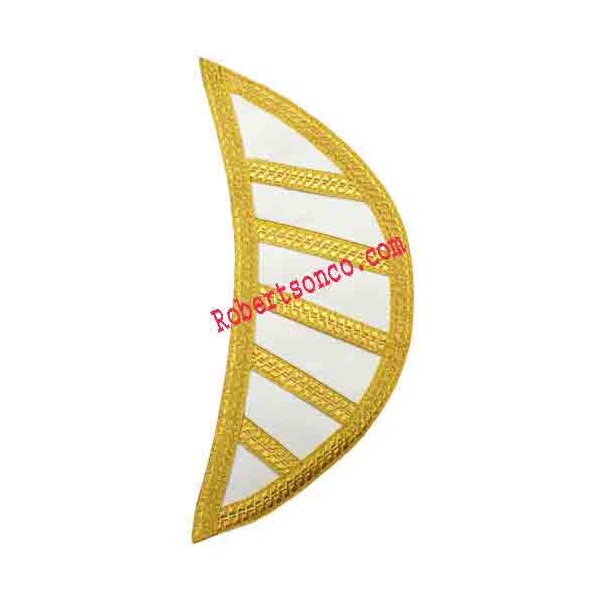 White Cotton Gold 5 Bar Trim Doublet Shoulder Shells. Rear elastic for sliding over epaulette Attachment hooks sewn on underside corners.