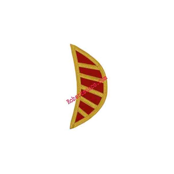 Red Wool Gold 5 Bar Trim Doublet Shoulder Shells. Rear elastic for sliding over epaulette Attachment hooks sewn on underside corners.