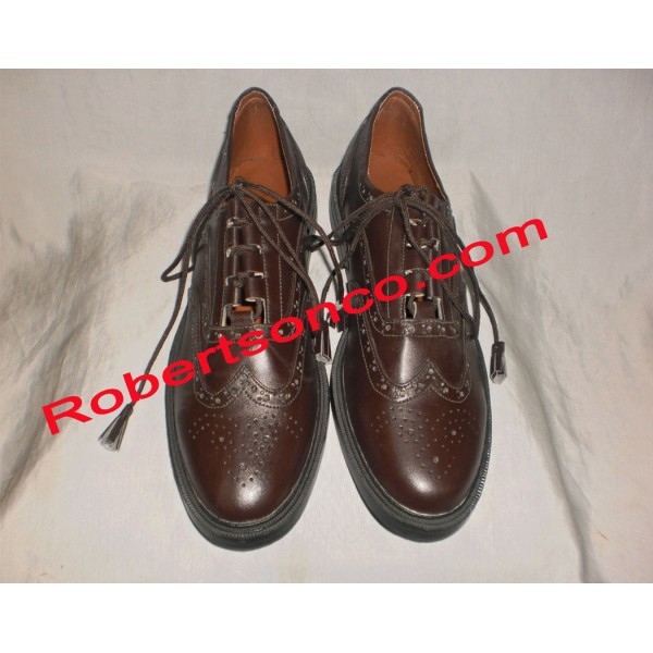 These piper Ghillie Brogues are ideal for long wear. Made to support a piper's feet for a full day's playing, these shoes will make sure that you stay comfortable at any event.These are made in classic Ghillie Brogue style with a real leather upper that's superbly detailed for full Highland flair. Ghillie brogues are traditionally open-fronted, giving you greater flexibility and the long laces wrap around around the ankle to tie for true drama and comfort.