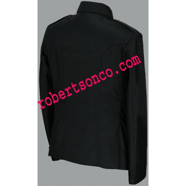 Black Cotton Cutaway Kilt Tunic unlined 4 pockets on front with thistle nickle palted buttons. With free belt hook.