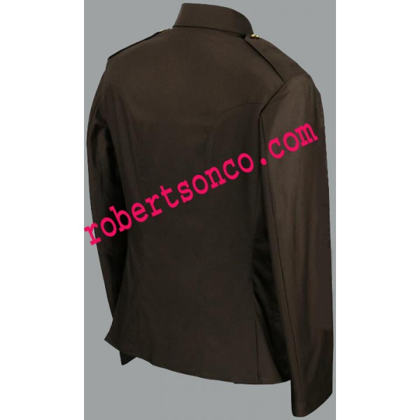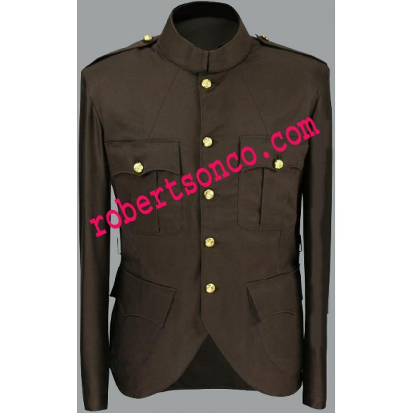 Brown Cotton Cutaway Kilt Tunic unlined 4 pockets on front with thistle nickle palted buttons. With free belt hook.