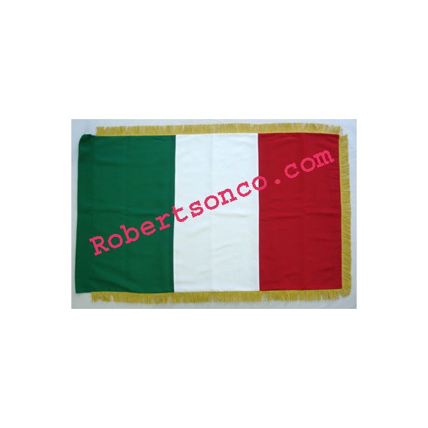 The high quality satin ground material, on which this flag is made and the mylar fringing makes it suitable for indoor ceremonial use only.