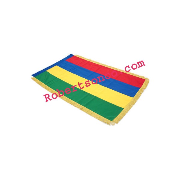 The high quality satin ground material, on which this flag is made and the mylar fringing makes it suitable for indoor ceremonial use only.