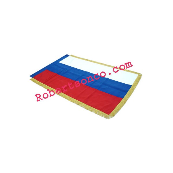 The high quality satin ground material, on which this flag is made and the mylar fringing makes it suitable for indoor ceremonial use only.