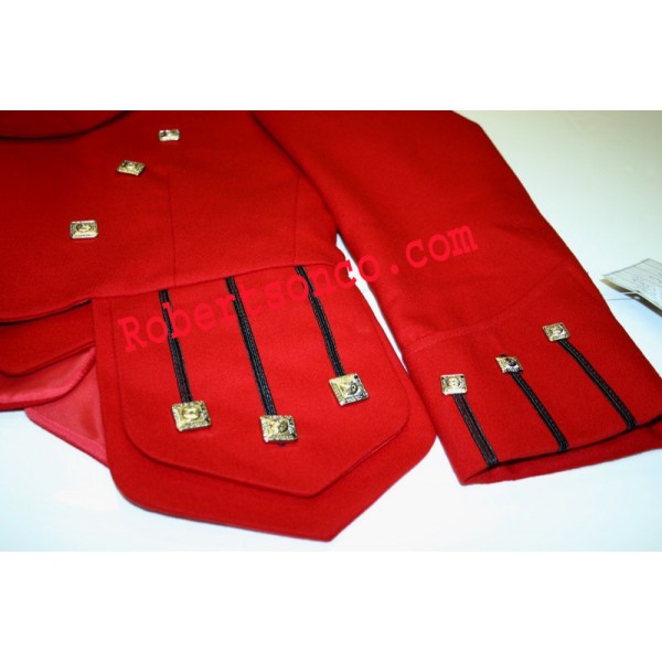 The Red Regulation Doublet is a very versatile and contemporary addition to your Scottish kilt outfit. The doublet jacket was at one time the regulation uniform jacket of the Highland regiments. This military style doublet can be worn at all formal occasions throughout the year with bow tie or ruche/cravat. With its red colour gives you a nice unique look and makes your outfit outstanding and traditional. The Doublet jacket comes with a 3-button waistcoat, satin lapels, braided style flaps on the front and back and silk braided epaulettes.