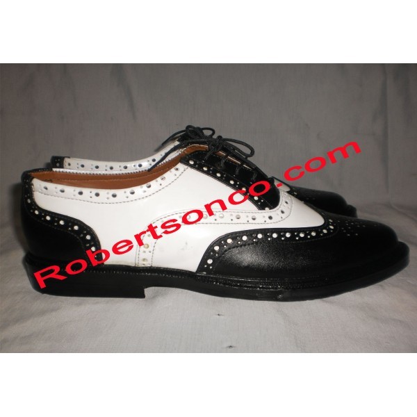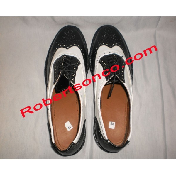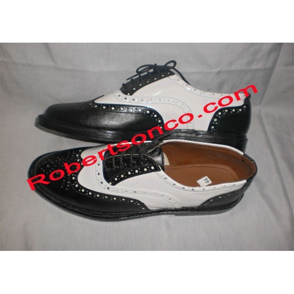 These piper Dress Ghillie Brogues With Black/White are ideal for long wear. Made to support a piper's feet for a full day's playing, these shoes will make sure that you stay comfortable at any event.These are made in classic Ghillie Brogue style with a real leather upper that's superbly detailed for full Highland flair. Ghillie brogues are traditionally open-fronted, giving you greater flexibility and the long laces wrap around around the ankle to tie for true drama and comfort.