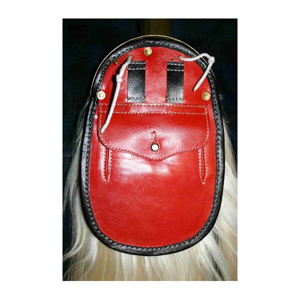Black watch office long horse hair sporran made in pure leather, Original white long horse hair on the five six black small horse hair tassals with red pocket and gold color black and thistle cantle include nickel plated chain belt leather strap with nickel plated hardware buckle use for pipe band's pipers or drummers or military cadets or military security guard.