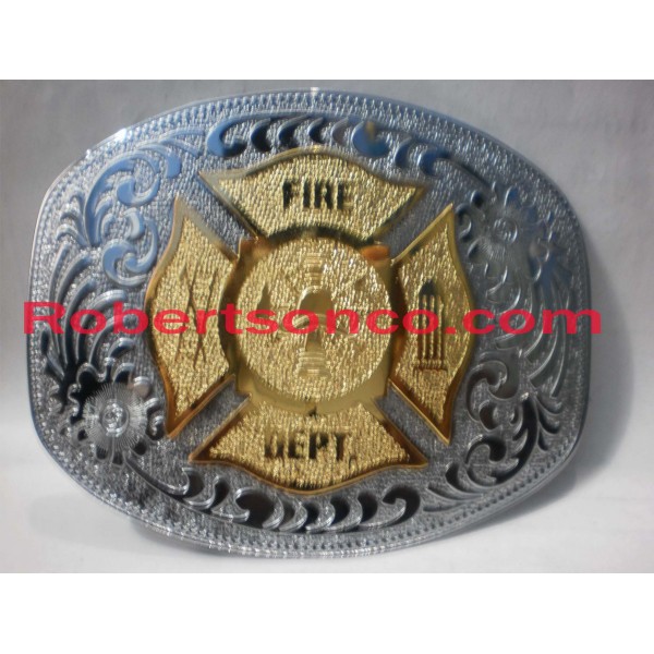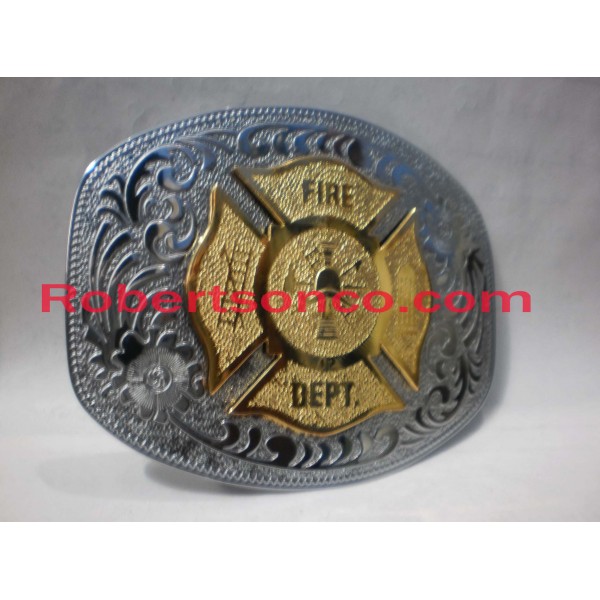 Fireman's Maltese Cross Belt Buckle With Gold Badge. This buckle fits with belts.