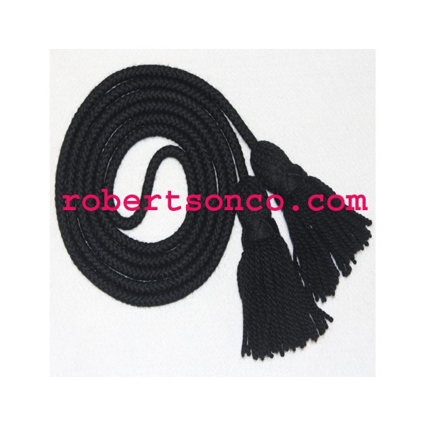 Bugle or trumpet black color silk/wool cord with tassels overall length = 270cm (106")...