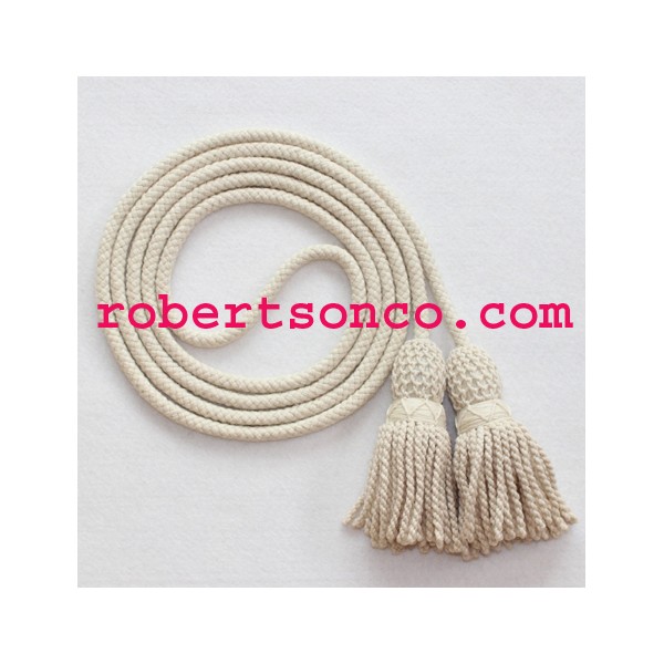 Bugle or trumpet cream color silk/wool cord with tassels overall length = 270cm (106")...
