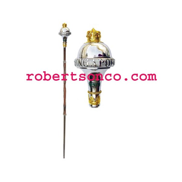 Drum Major's ceremonial mace mallaca cane bright silver chrome plated chain and bright silver chrome plated ferrules with bright silver chrome plated trumpet shap plain head and gold color crown...