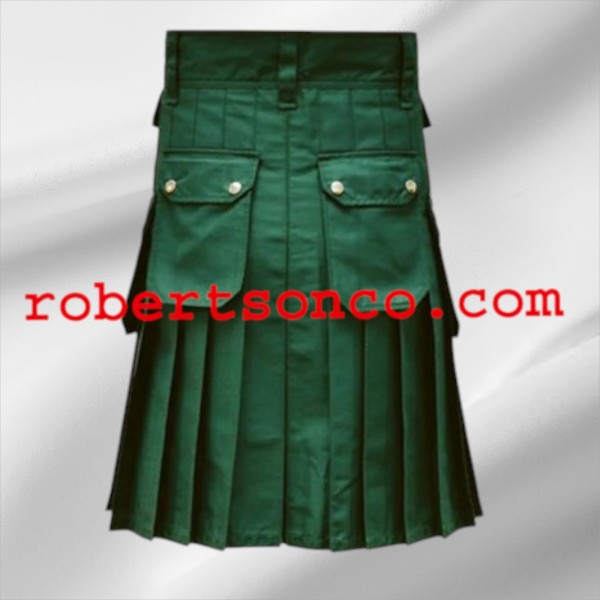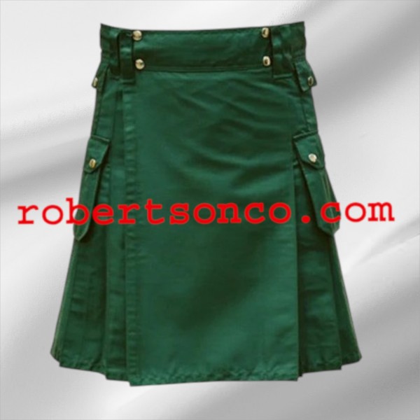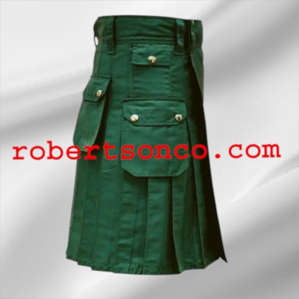 Stylish men cargo utility kilt (dark green color 6 pockets kilt) is a stylish yet very practical Cargo kilt is crafted with a blend of tradition and modernity. Featuring six spacious pockets, this Men utility kilt provides ample storage for all your essentials. This cargo kilt is perfect traditional kilt for sports, leisure, traditional events or simply casual wear as desired...