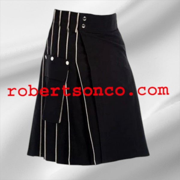 Stylish Men's Utility Black Kilt and White Piping with 6 Pockets