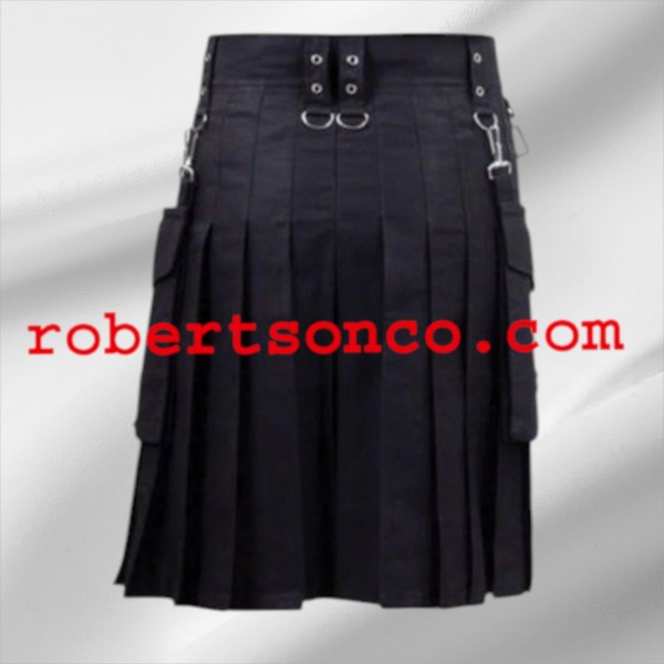Stylish men cargo utility kilt (black color and white piping 6 pockets kilt) is a stylish yet very practical Cargo kilt is crafted with a blend of tradition and modernity. Featuring six spacious pockets, this Men utility kilt provides ample storage for all your essentials. This cargo kilt is perfect traditional kilt for sports, leisure, traditional events or simply casual wear as desired...
