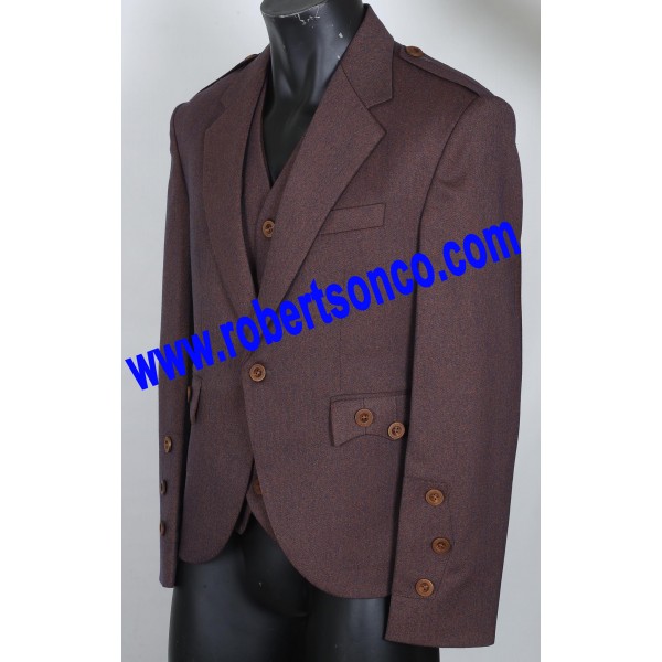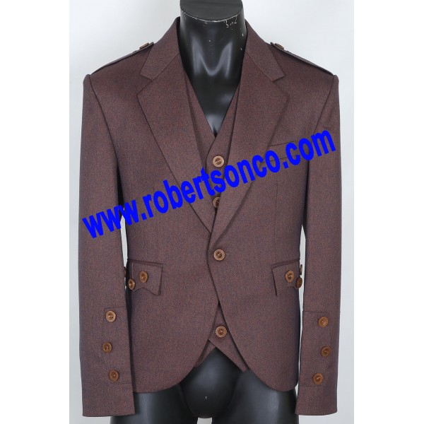 Maroon Tweed Argyll Kilt Jacket with Five Button Waistcoat.