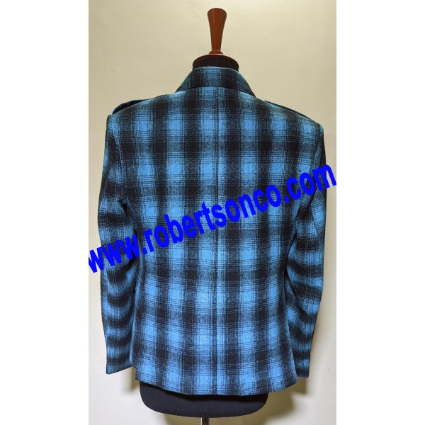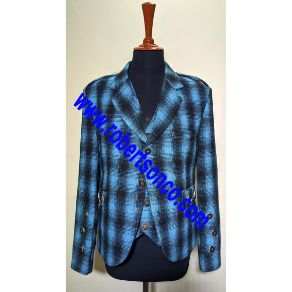 Blue & Black Check Tweed Argyll Kilt Jacket with Five Button Waistcoat.