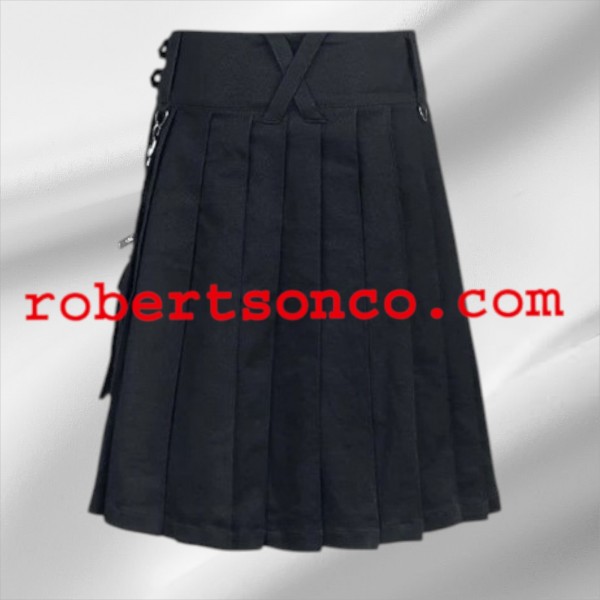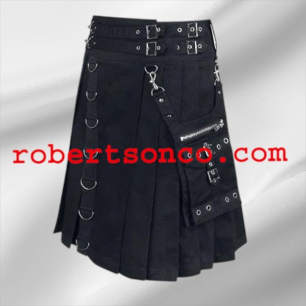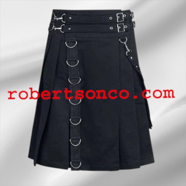 Stylish Calle Utility Kilt Modern Black Gothic Punk Utility Kilt is a distinctive & captivating piece of Scottish clothing. It offers a unique style & innovative & eye-catching design. The front of the kilt is fantastic & is styled with a D-ring strap. On the top of the show the Men's Punk Kilt has a pair of buckle straps that are adjustable & connected with the help of D-rings & lobster clasps...