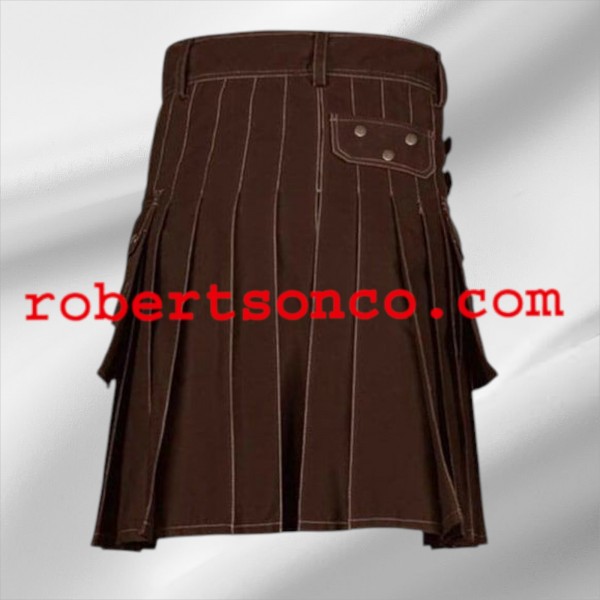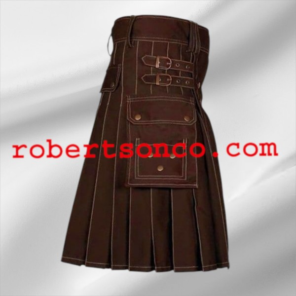 Brown Victory Utility Kilt with Decorate Apron is a versatile choice for those looking for a stylish look and functional features. It makes your look more attractive due to its innovative design. It is handmade, and we offer it in various colors for your convenience in selecting the one you want to pair with your outfit...