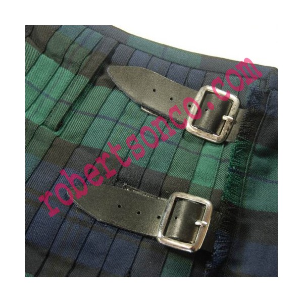 Tartan kilts 8 yard for pipe band's pipers and drummers made in Black Watch 100% acrylic wool tartan fit three black leather strip belts with nickel plate hardware buckles. Available in any tartan Kilt.
