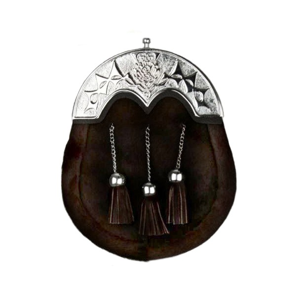 Rabbit hair sporran made in original rabbit fur on the front nickel plated chain and fur tassals with nickel plated cantle...