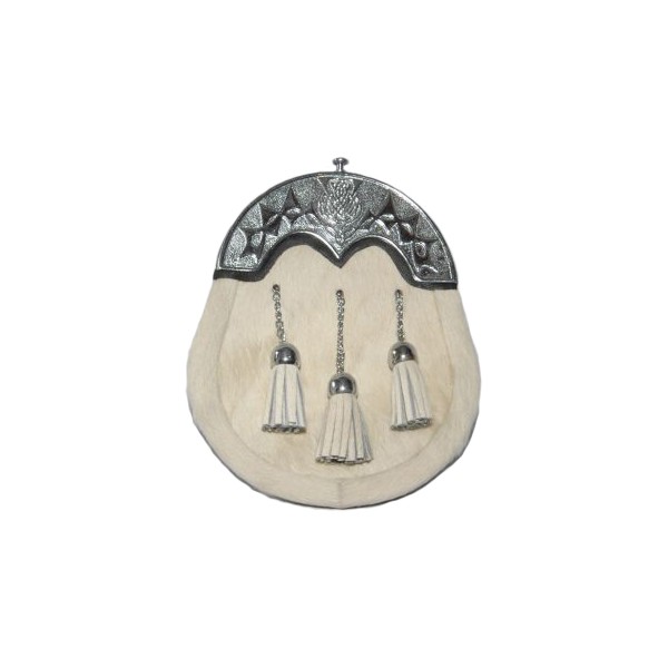 Rabbit hair sporran made in original rabbit fur on the front nickel plated chain and fur tassals with nickel plated cantle...