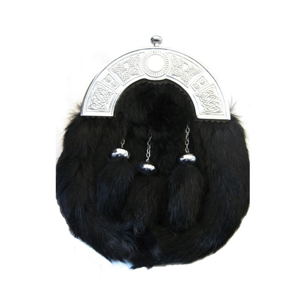 Rabbit hair sporran made in original rabbit fur on the front nickel plated chain and fur tassals with nickel plated cantle...
