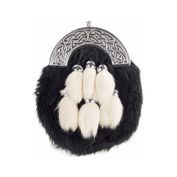 Rabbit hair sporran made in original rabbit fur on the front nickel plated chain and fur tassals with nickel plated cantle...