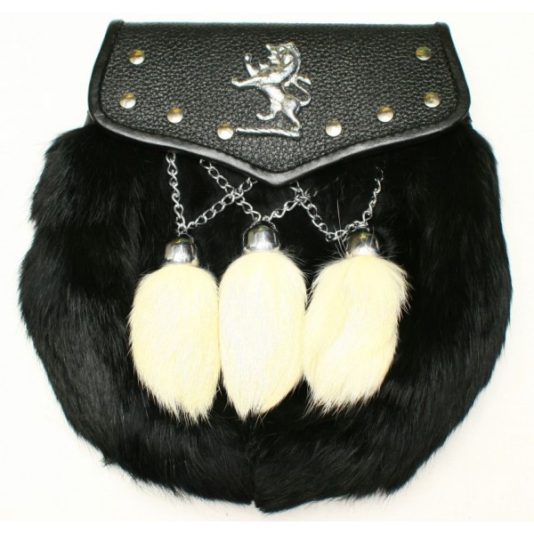 Rabbit hair sporran made in original rabbit fur on the front nickel plated chain and fur tassals with nickel plated nail and nickel plated rampart lion badge...