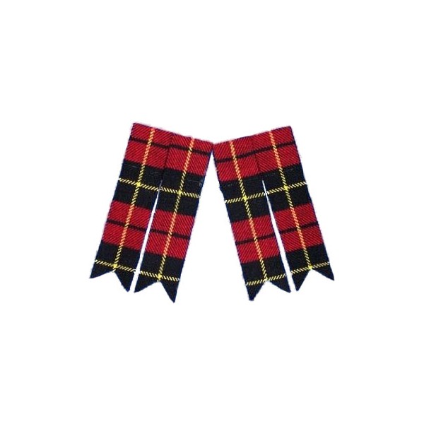 Wallace Tartan Kilt Sock Flashers, THE FLASHES ARE MOUNTED ON 1" (3CM) WIDE WHITE ELASTIC WITH VELCRO ADJUSTERS AND FIT ALL SIZES.