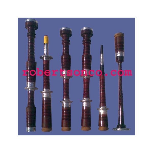 Great Highland Bagpipe full size made in rose wood high natural finishing outside and inside with full nickel plated thistle engraved mounts include Royal Stewart tartan cover, Royal Stewart cord, bag, one pipe chanter reed, one set of cane drone, one set of rubber stopper, hemp and seasoning oil.