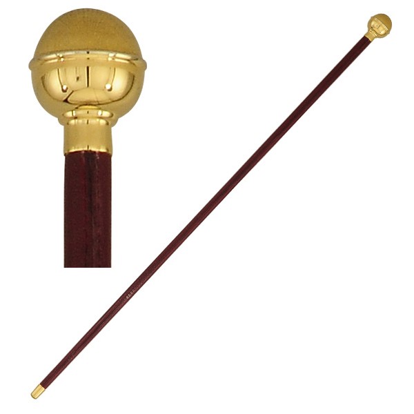 Prade Officer stick made in brown finishing mallaca cane with gold color ball head and ferrule.
