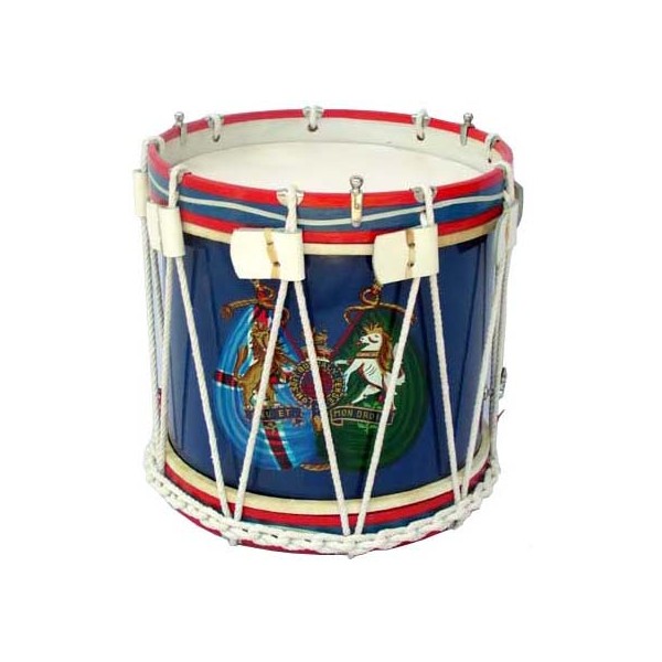 Pipe band side drum size 14" x 12" with wooden hoops and wooden shall also rope and brace fitting include logo...