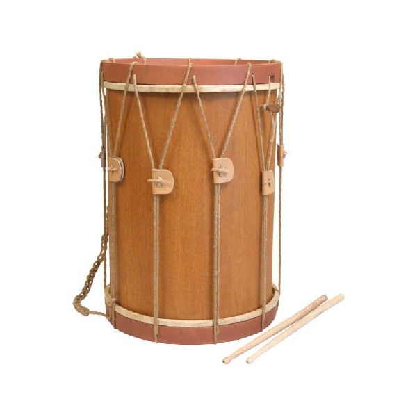 Renaissance Drum, 13" x 19" wooden shall and wooden hoops rope and brace fitting with beaters.
