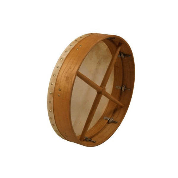 Bodhrans 18 inches x 3 1/2 inches inside tunable made in cocas wood fine looking high quality finishing bolt tuning is hidden on the inside of the frame inside handle double cross bar with natural color goat skin and nickel plated nail.