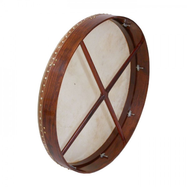 Bodhrans 26 inches x 3 1/2 inches inside tunable made in rose wood fine looking high quality finishing bolt tuning is hidden on the inside of the frame inside handle double cross bar with natural color goat skin and nickel plated nail.