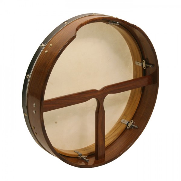 Bodhrans 16 inches x 3 1/2 inches inside tunable made in rose wood fine looking high quality finishing bolt tuning is hidden on the inside of the frame inside handle T-bar with natural color goat skin and nickel plated nail.